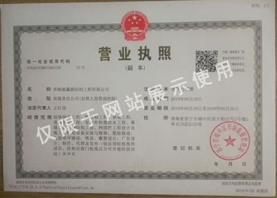 青海馳贏膜結(jié)構(gòu)工程有限公司(17716069209)是一家專(zhuān)門(mén)從事膜結(jié)構(gòu)工程的綜合公司,公司秉承信譽(yù)至上、質(zhì)量保障的宗旨,開(kāi)拓、發(fā)展、創(chuàng)新的理念,公司目前主要從事膜結(jié)構(gòu)設(shè)計(jì),方案設(shè)計(jì)、剪裁設(shè)計(jì)、膜材加工及鋼結(jié)構(gòu)安裝與維修。